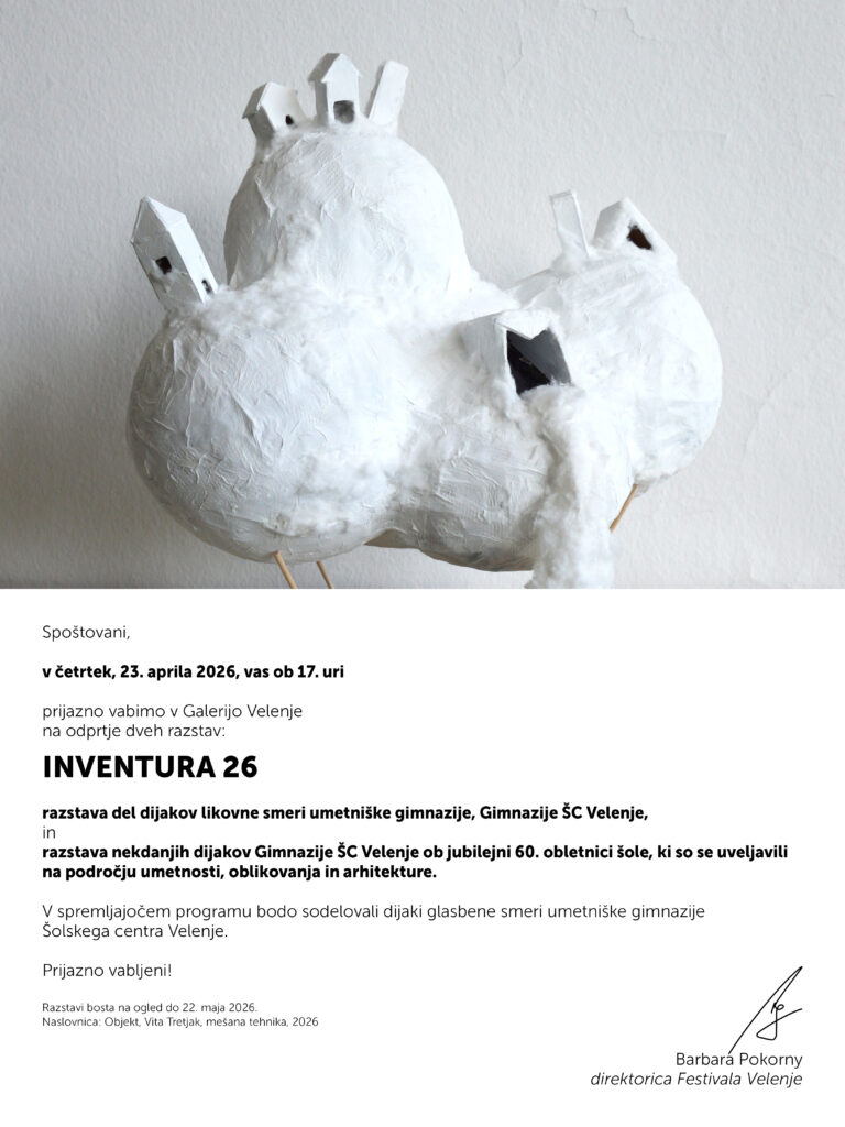 K sodelovanju v jubilejni ediciji tokratne razstave smo povabili nekdanje dijake naše šole, ki so svoje poklicne in ustvarjalne poti nadaljevali na likovno-vizualnih področjih. Inventura 2026 bo preplet sedanjih, preteklih in prihodnjih generacij Gimnazije ŠC Velenje.
