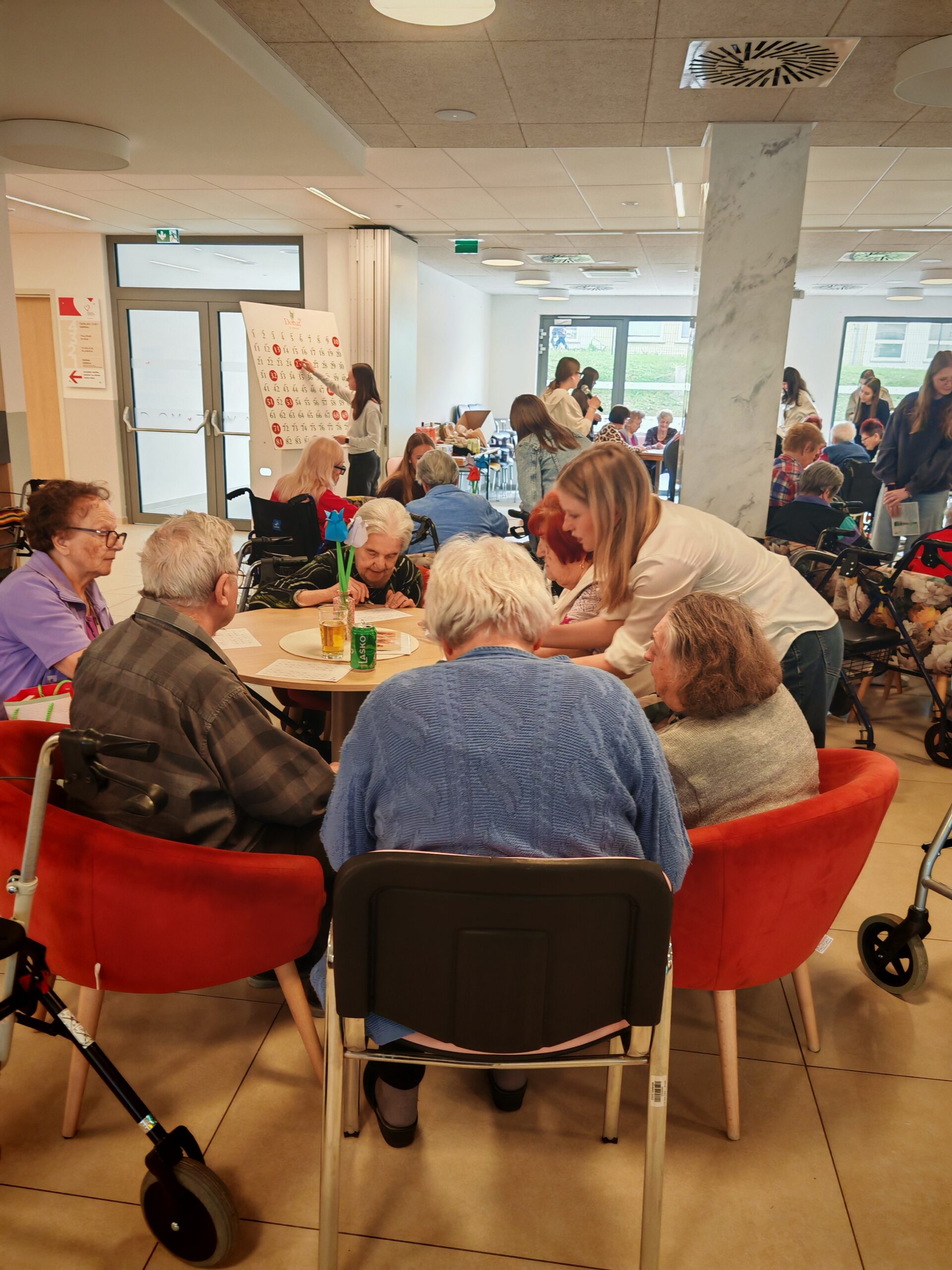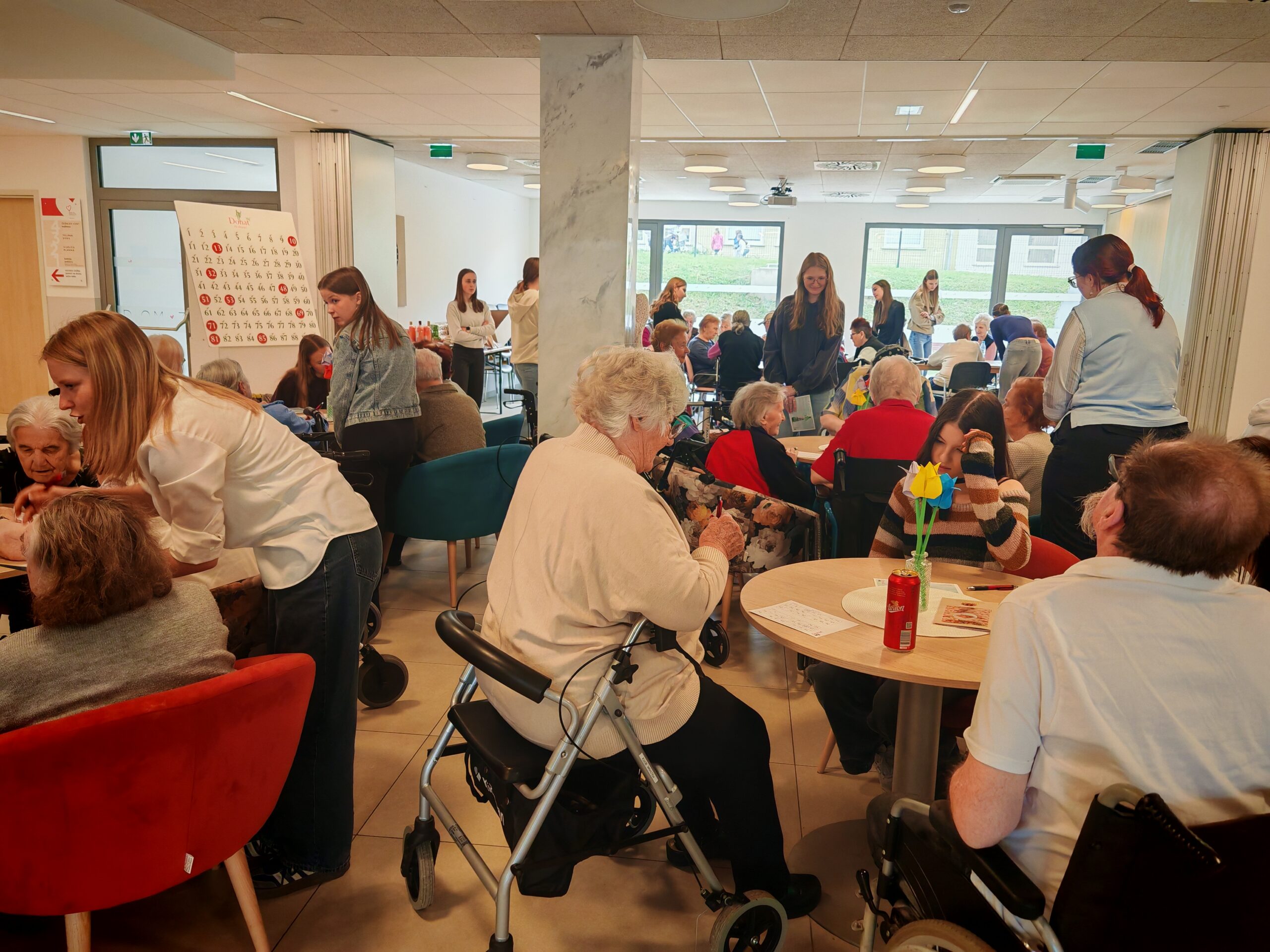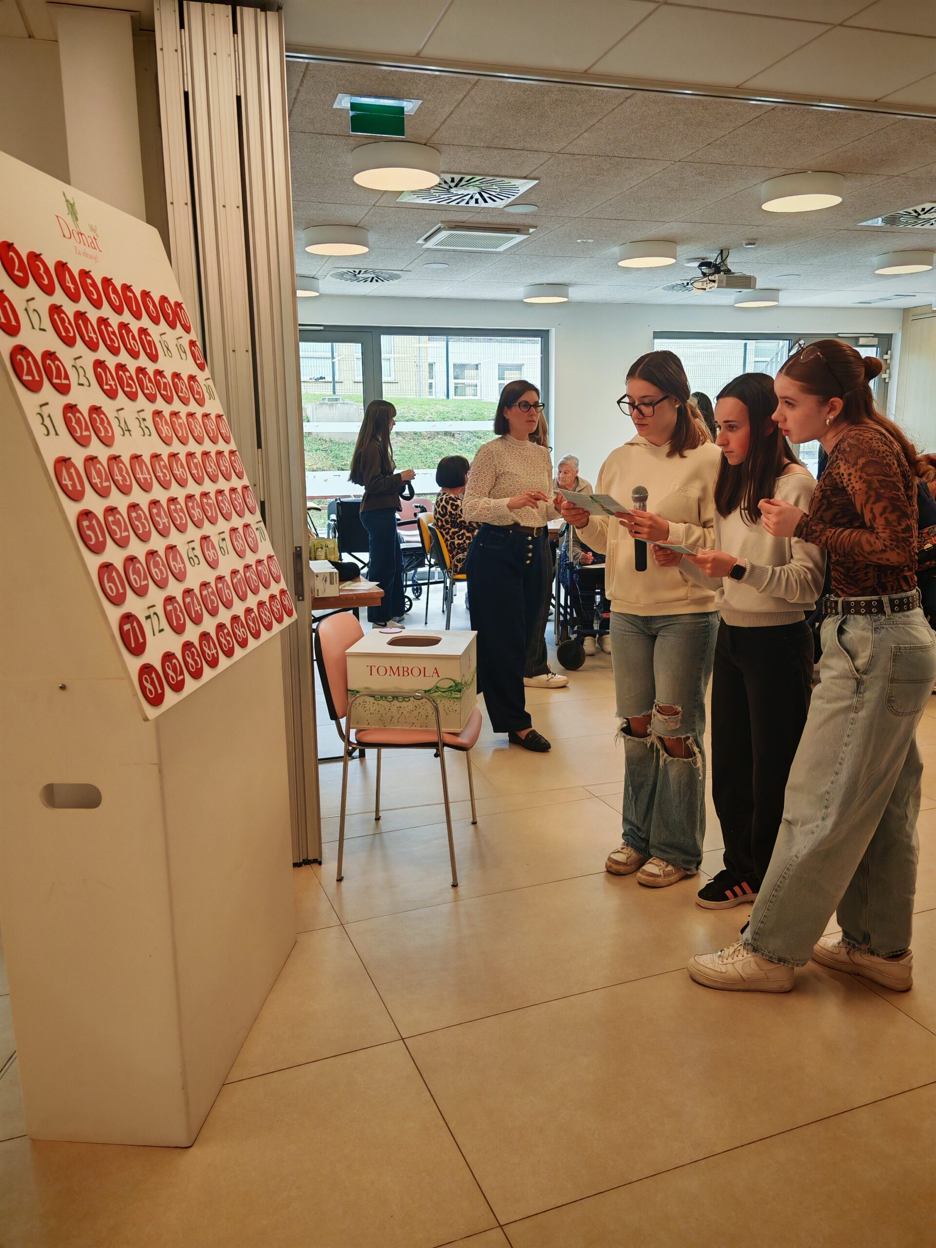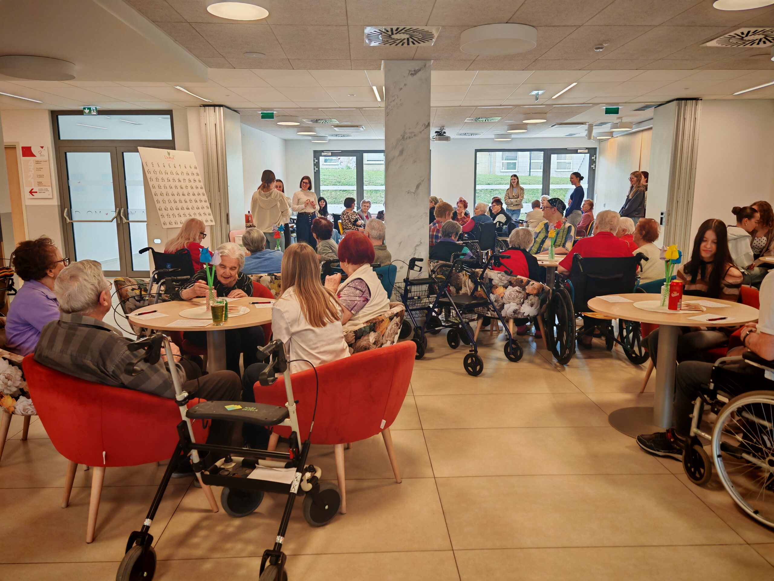 Dijakinje so s svojo prisotnostjo, pomočjo in prijaznostjo prispevale k prijetnemu vzdušju ter tako popestrile vsakdan stanovalcem doma. Pomagale so jim pri igri, dve dijakinji pa sta prevzeli tudi vodenje tombole. S skupnimi močmi so poskrbeli, da so čisto vsi oskrbovanci uspešno sodelovali in prišli do svojih dobitkov ter nagrad.