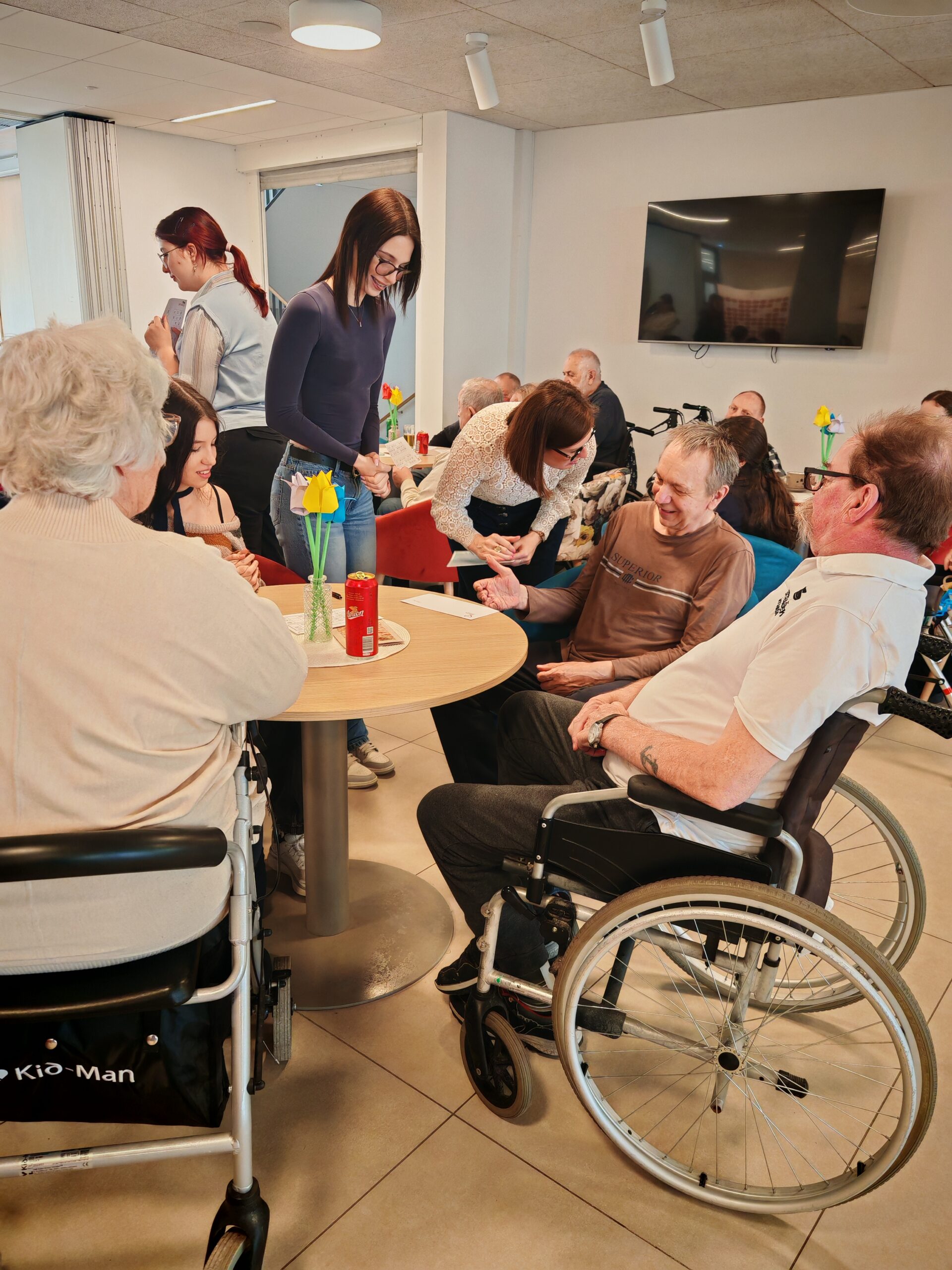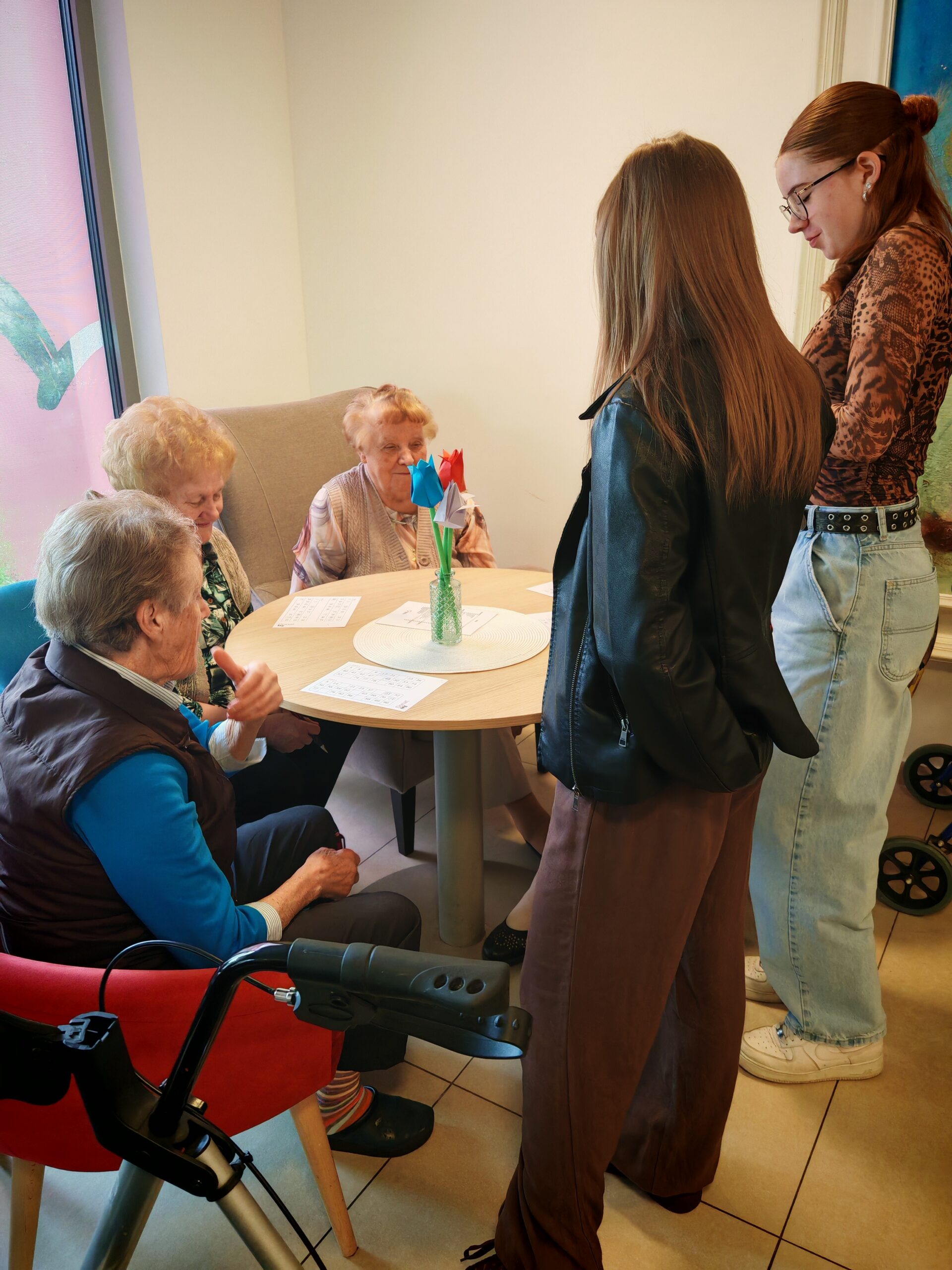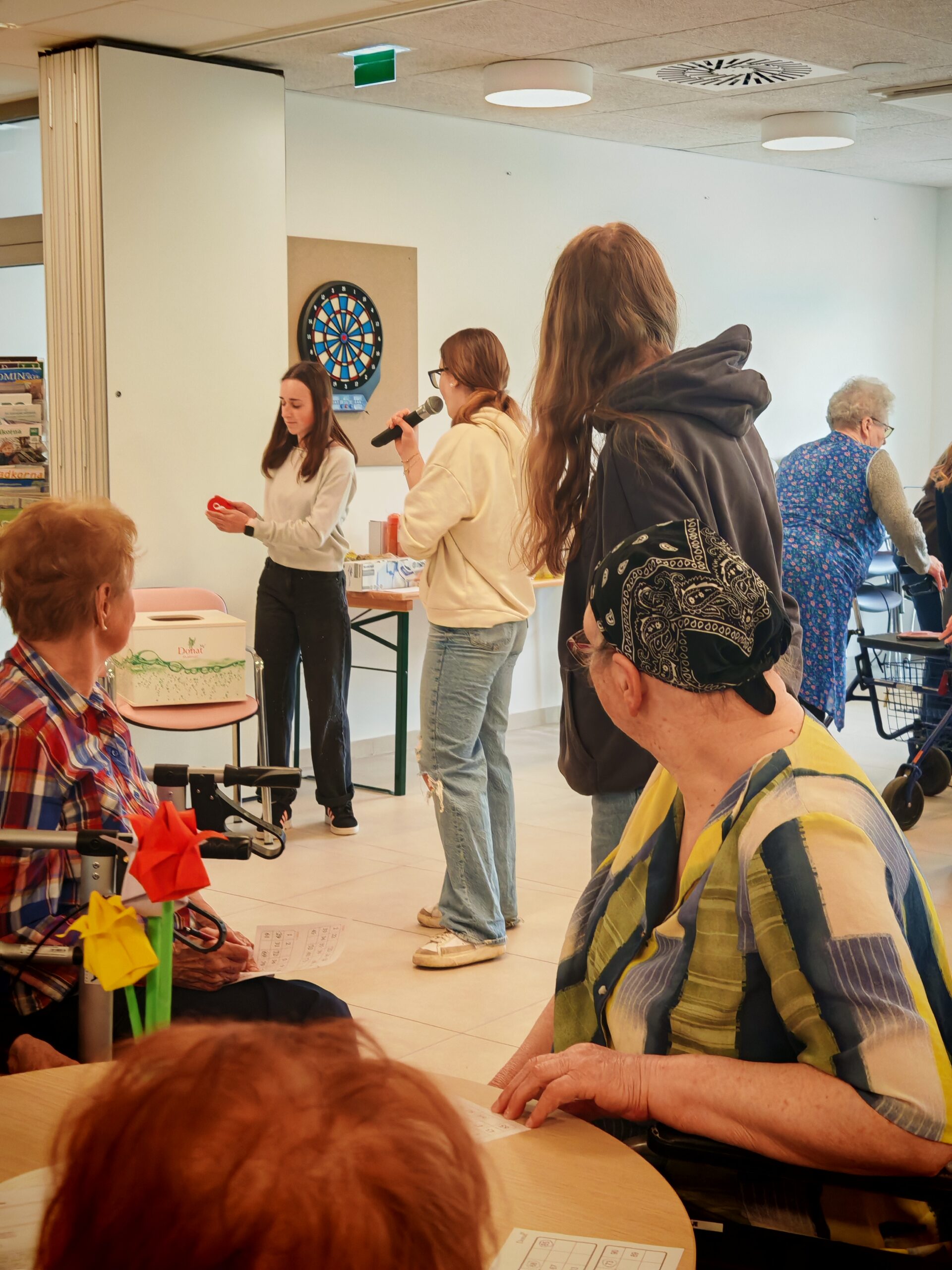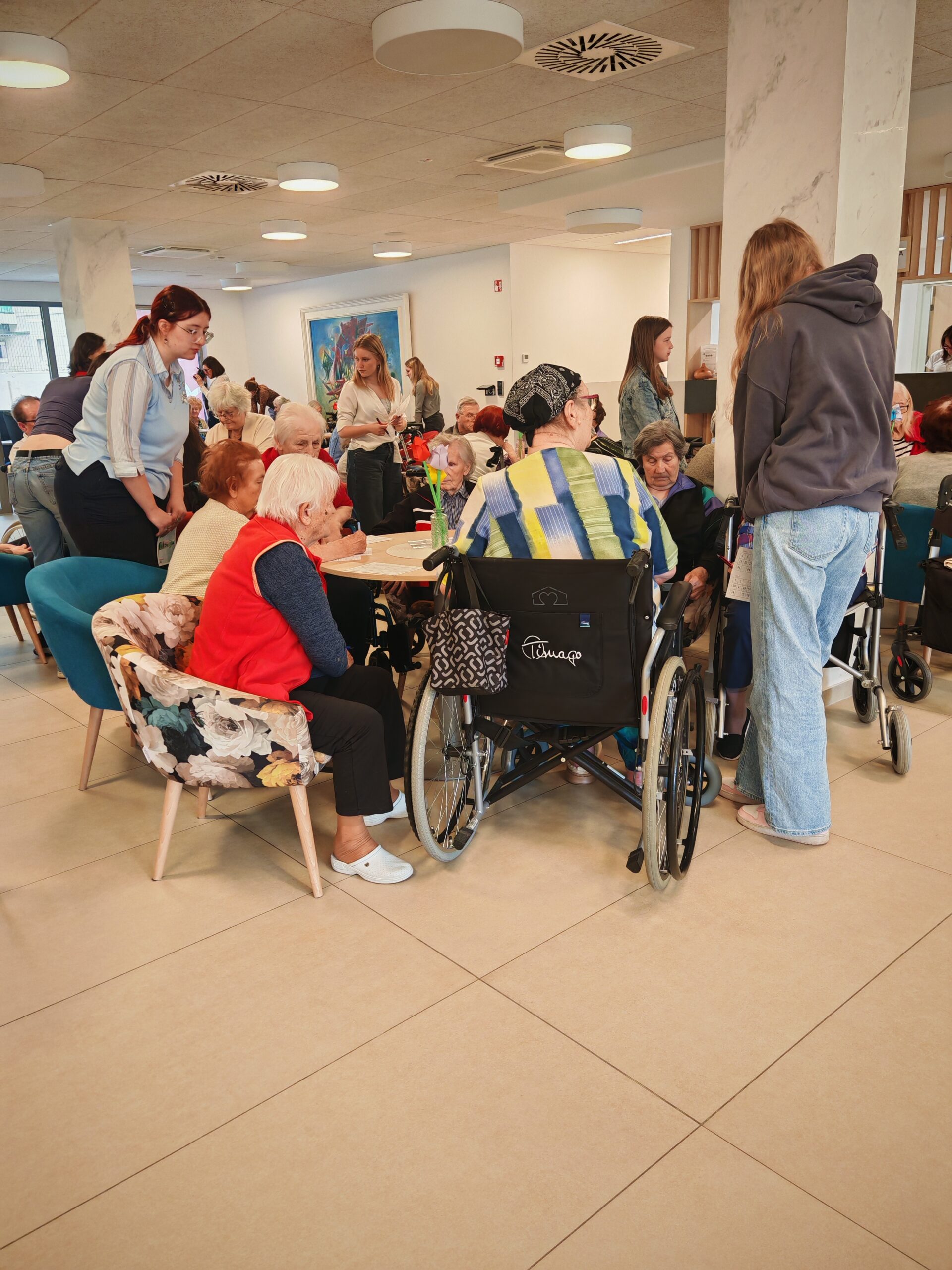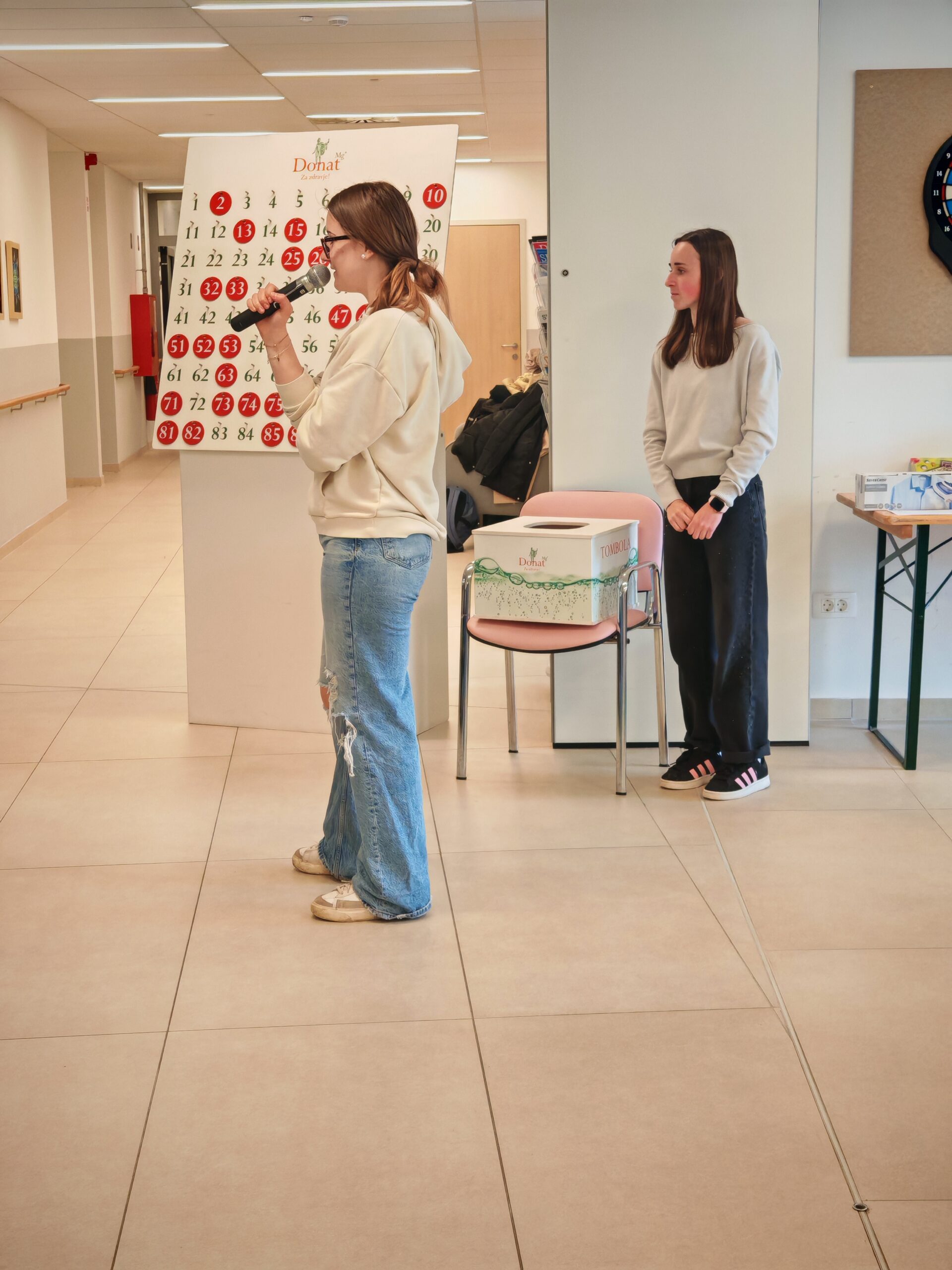 Dijakinje so s svojo prisotnostjo, pomočjo in prijaznostjo prispevale k prijetnemu vzdušju ter tako popestrile vsakdan stanovalcem doma. Pomagale so jim pri igri, dve dijakinji pa sta prevzeli tudi vodenje tombole. S skupnimi močmi so poskrbeli, da so čisto vsi oskrbovanci uspešno sodelovali in prišli do svojih dobitkov ter nagrad.