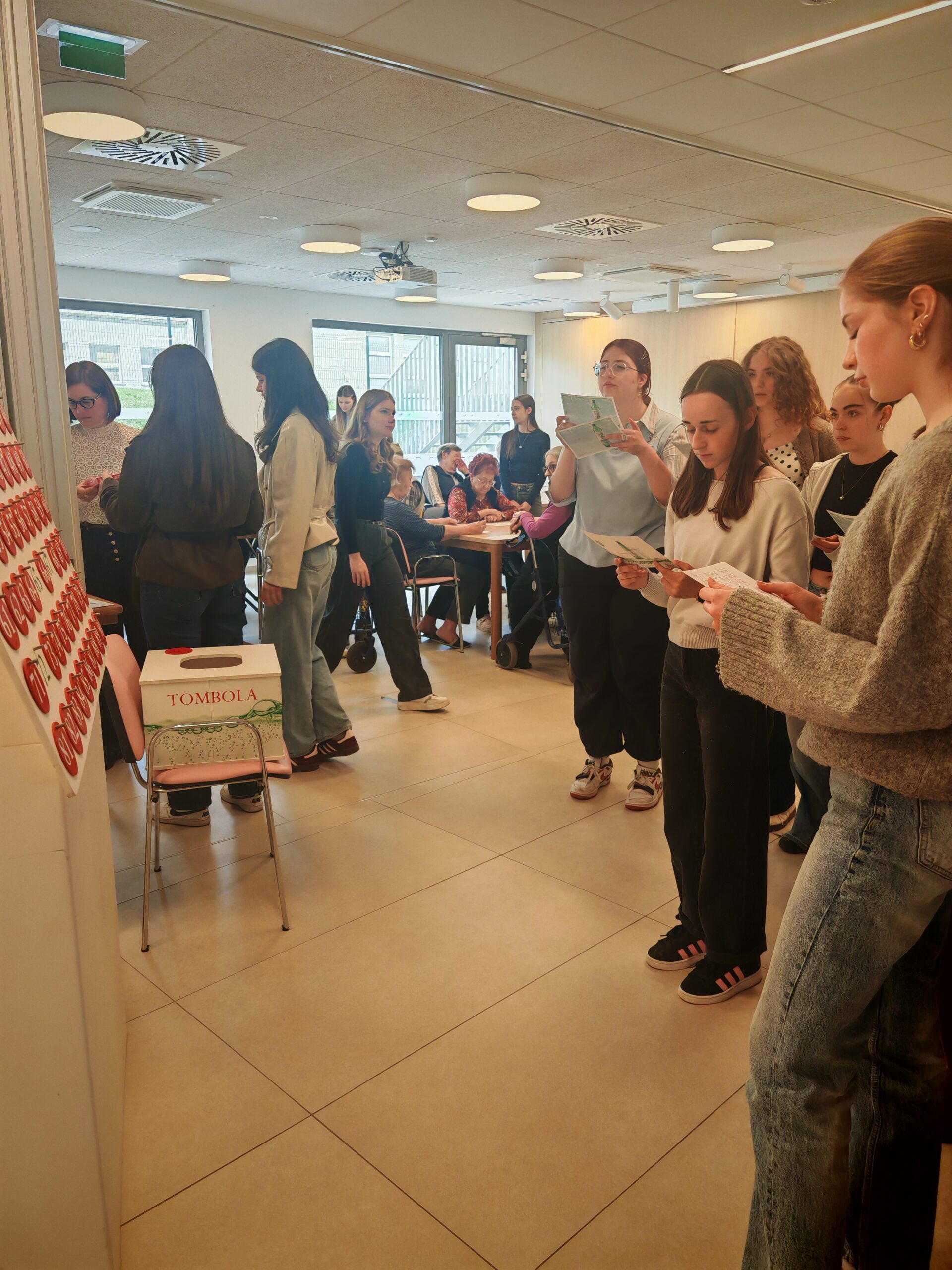 V okviru prostovoljstva so dijakinje 2. B in 2. C obiskale Dom za varstvo odraslih Velenje, kjer so skupaj s stanovalci preživele prijetno urico ob igranju tombole.
